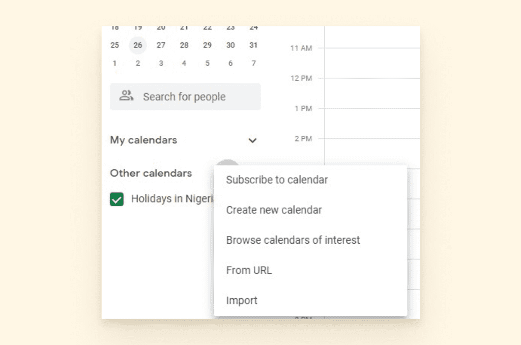 Once you’ve added your holidays, click on “Internet Calendars” in the same “Calendar Options” section.